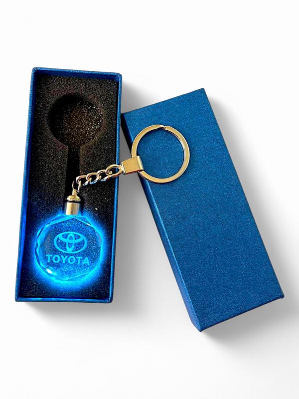 Стильний світлодіодний брелок із логотипом Toyota - ідеальний аксесуар для автолюбителів. Виготовлений із прозорого акрилового скла у формі кристала. Яскраве підсвічування додає ефектності та практичності у темряві. Колір світіння поступово змінюється. Характеристики: ✔ Матеріал: акрилове скло + метал ✔ Колір підсвітки: змінюється ✔ Живлення: батарейки ✔ Управління: поворот ✔ Комплектація: брелок, подарункова коробка, батарейки