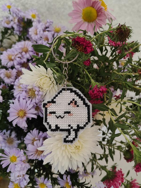 Брелок Ленивый котик, вышивка крестиком, ручная работа