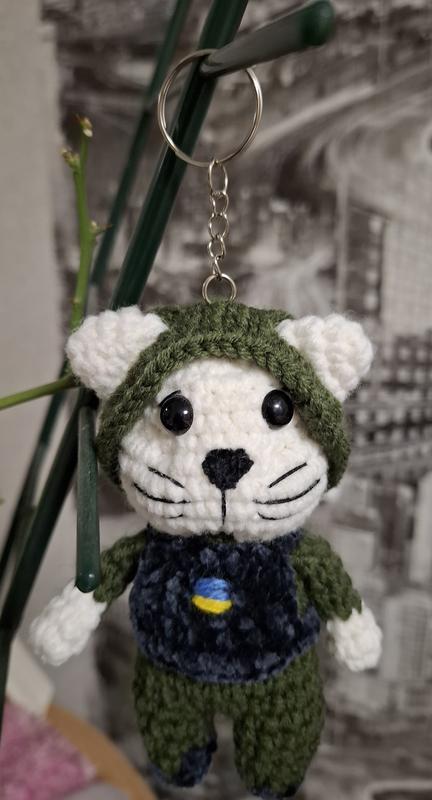 Вязаний міні котик ЗСУ,можна використовувати як брелок,можливий індивідуальний надпис,8-12см