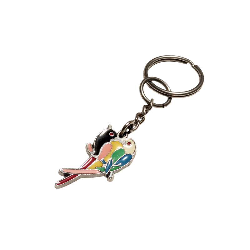 Брелок Папуги для ключів, сумки, одягу або декору. Вироблений з нержавіючої сталі з ручним розписом кольоровою емаллю. Загальна довжина з підвіскою: 9,5 см. Розміри підвіски (Д*Ш): 3,5 * 1,7 см.