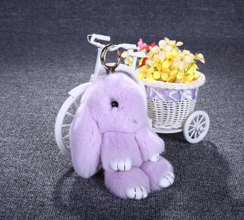 Хутряний кролик брелок на сумку рюкзак, м'яка іграшка заєць світло-фіолетовий