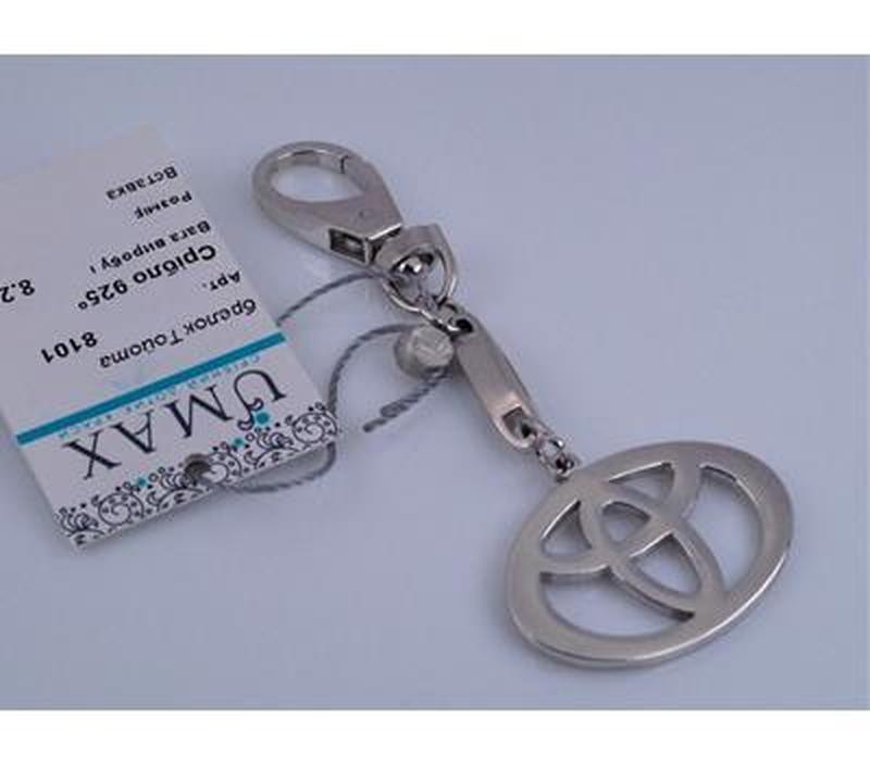 Брелок для ключів срібний "Тойота" 925 проби, Українського виробника, походження (захищає виріб від потемніння). Вага 8.20 гм, ширина емблеми 3,00 см, довжина загальна 7,30 см. Виріб випробуваний пробірним наметом України, є бирка та стоїть клеймо виробника.