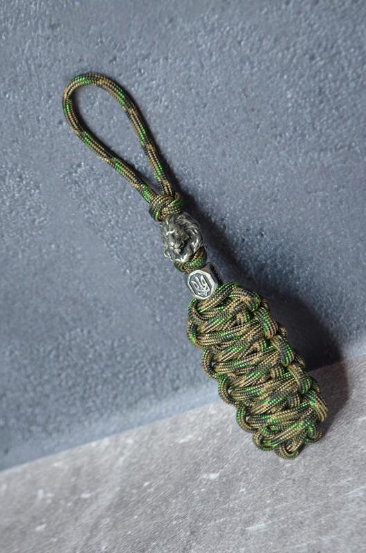 Брелок з паракорду з гербом україни та левом з мельхіору