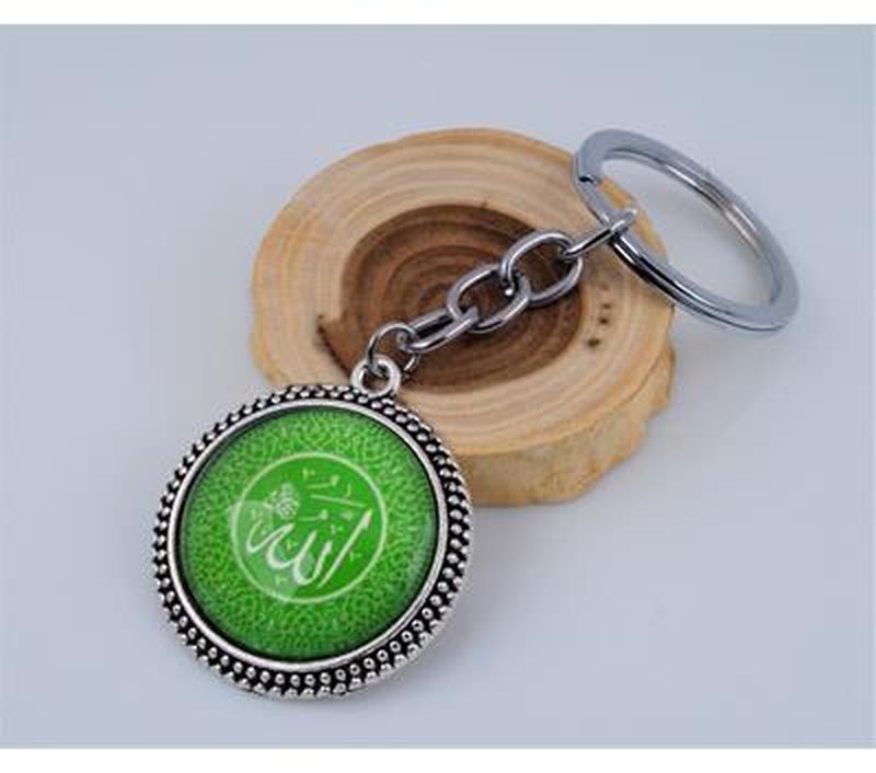 Брелок для ключів "Алах". Метал, скло, колір — срібло, розміри: довжина загальна 9,00 см, діаметр 3,00 см, вага 13.77 грм.