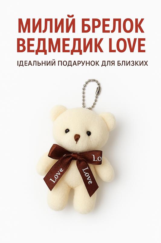 Брелок іграшка Ведмедик Love для сумки та ключів Брелок м'яка іграшка Ведмедик з бантиком Love - стильний і милий аксесуар, який стане чудовим доповненням до ключів, сумки чи рюкзака. Компактний розмір і приємний на дотик плюш роблять його не тільки красивим, але й зручним у щоденному використанні. Ведмедик прикрашений коричневим атласним бантом із написом Love, що символізує ніжність і турботу. Такий брелок буде гарним подарунком для дівчини, дитини, друга або коханої людини. Його можна подарувати на День народження, 14 лютого, 8 березня чи просто як знак уваги. Завдяки металевому ланцюжку-карабіну брелок легко кріпиться до ключів, рюкзака, сумки або навіть використовується як прикраса для авто. Виглядає яскраво та оригінально, виділяючись серед звичайних брелоків. Якщо ви шукаєте сувенір, подарунок або стильний аксесуар, цей брелок стане ідеальним вибором. Він обов'язково подарує гарний настрій та викличе усмішку. Характеристики - Тип: брелок-м'яка іграшка - Форма: ведмедик - Матеріал: плюш, металевий ланцюжок - Колір: білий-молочний (з коричневим бантом) - Розмір: 10 см - Кріплення: металевий брелок-ланцюжок - Призначення: для ключів, сумок, рюкзаків, портфелів, букетів, для одягу, як сувенір Переваги - Компактний і легкий - Приємний на дотик матеріал - Стильний дизайн з бантом - Підійде як подарунок чи сувенір - М'яка іграшка / брелок /Іграшка для букетів Ведмедик 10 см