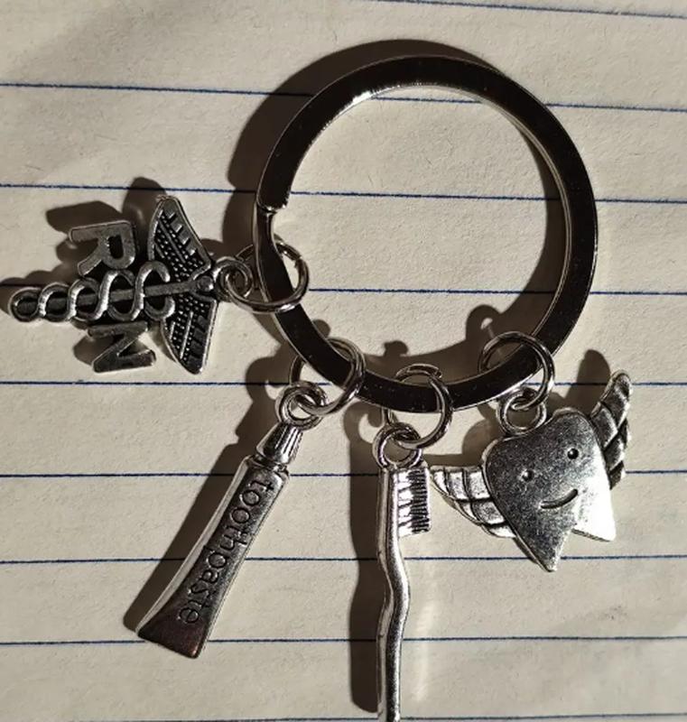 Брелок на ключі метал сріблястий зубець касуцей 4 підвіски