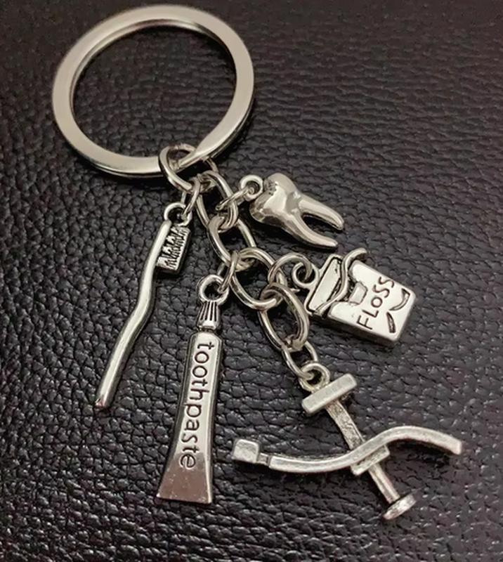 Брелок на ключі метал сріблястий зубець паста щітка зубне крісло стоматолог
