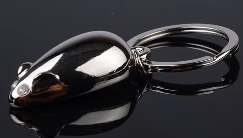 Брелок на ключі метал сріблястий миша щура об'ємний як фігурка 3d очей-камінець