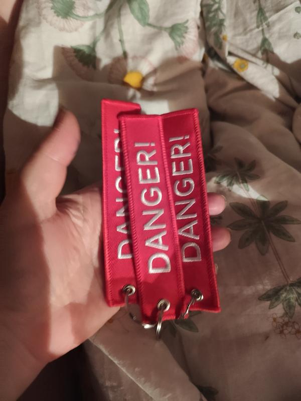 Вишивка!брелок на ключі ремувка червона бирка небезпечно danger прямокутна двостороння