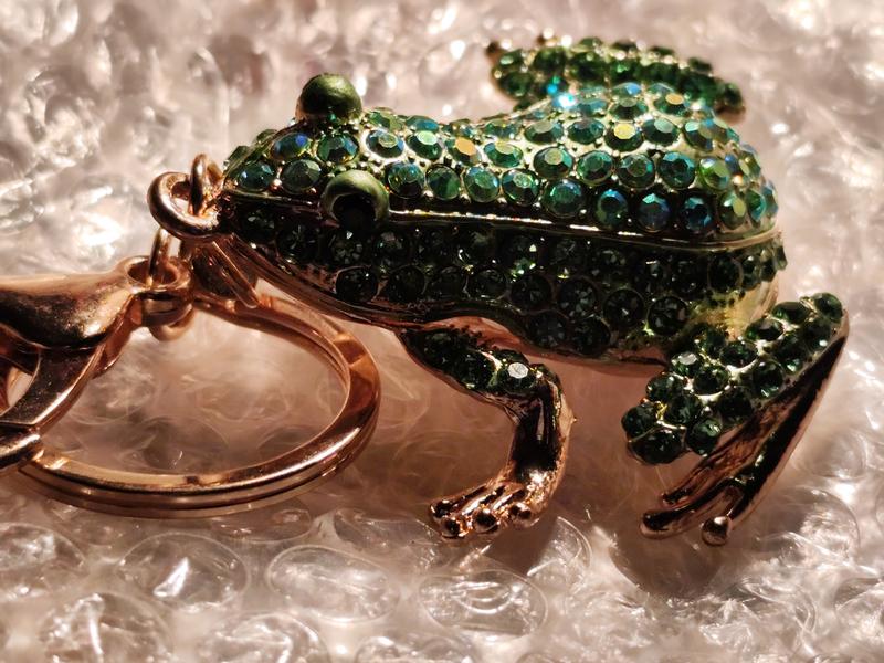 Карабін і кільце.брелочок дуже красивий. жабочка-чудо.особлива якість.. гарна жабка-правда.камені переливаються
