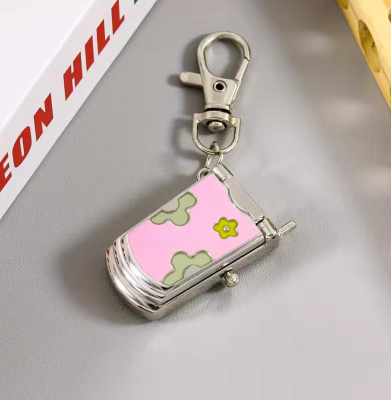 Годинник-брелок «Мобільний» кварцові (рожеві). Загальна висота брелока 8,00 см, розмір годинника: висота 4,00 см, ширина 2,30 см, товщина 1,00 см, вага 33.50 гм., батарейка в комплекті, чудова якість виготовлення.