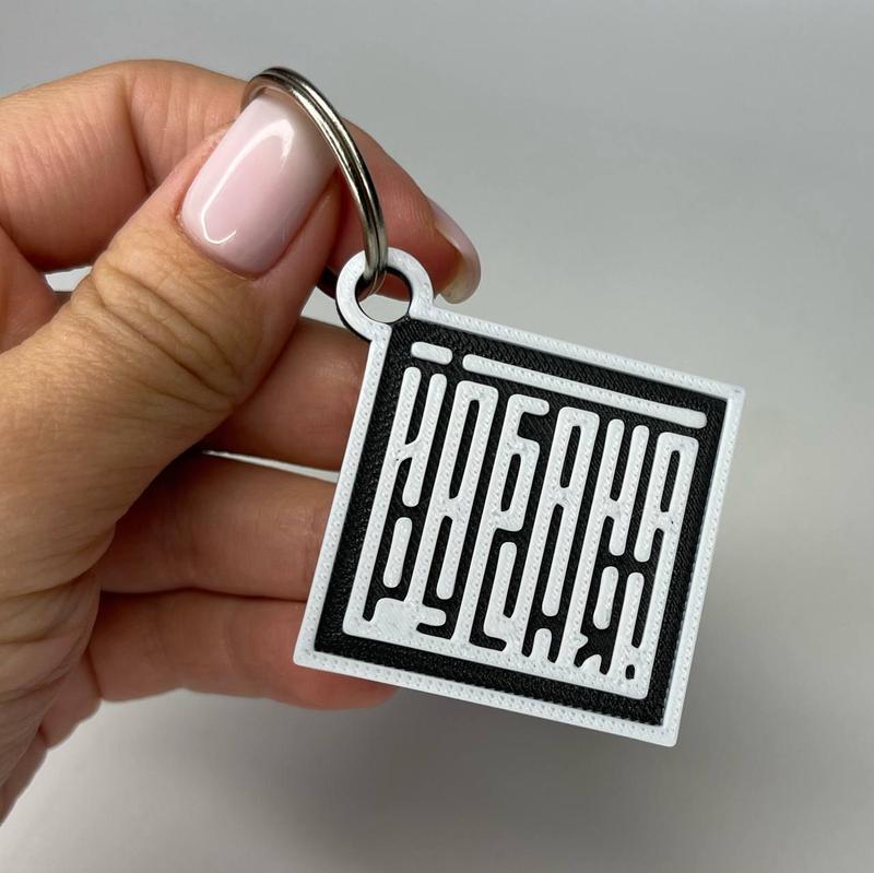 Брелок з кільцем finding крадратний з написом ..обана русня чорний білий 44 мм х 44 мм х 2...