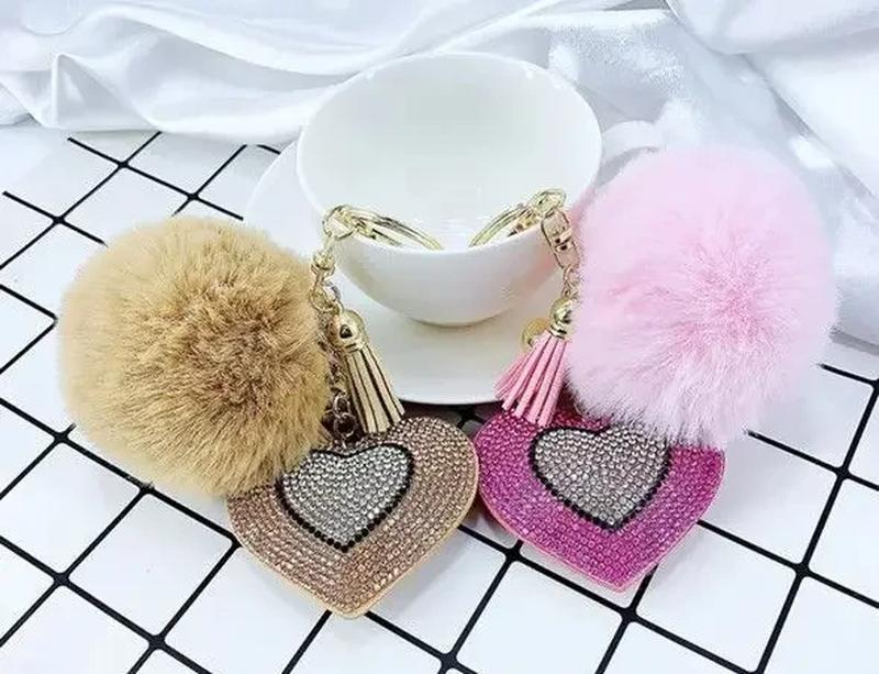 Брелок Серце з помпоном Милий брелок у формі серця зі стразами, хутряним помпоном і пензликом прикрасить вашу сумочку, ключі, одяг, а також стане вашим талісманом. Прекрасний варіант для подарунка вашим близьким, друзям і коханим.