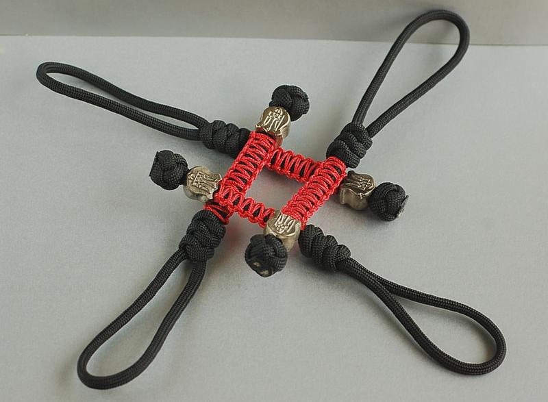 SvaStone темляк Тризуб из паракорда для ножей, фонарей, мультитулов и других инструментов. Материал: паракорд и микрокорд пр-ва США. Материал бусинымельхиор. Общая длина темляка 15 см. Длина петли7 см Особенности:Разработано Любомиром Бородой специально для SvaStone. Ручная работа.