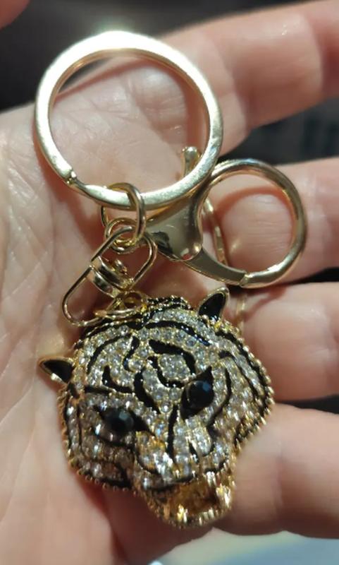 Об'ємний брелок на ключі або сумку морда тигра тигр золотистий метал каміння