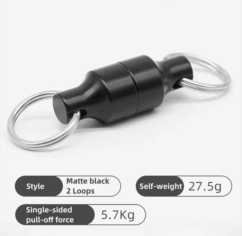 Брелок-швидкісний із потужними неодимовими магнітами (на ключі) діаметр 14 мм. Довжина 7,00 см. (з урахуванням кілець), діаметр вбудованого магніту 1,00 см., вага 27.00 гм. Матеріал — метал (в нижню частину брелока вбудований неодимовий магніт), колір — чорний/матовий, магнітиться дуже добре. Брелок можна повісити на ключі та використовувати як тестер металу або для інших цілей.