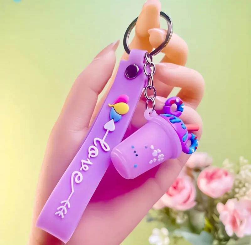Брелок "love" с милым стаканчиком и пончиками, фиолетовый