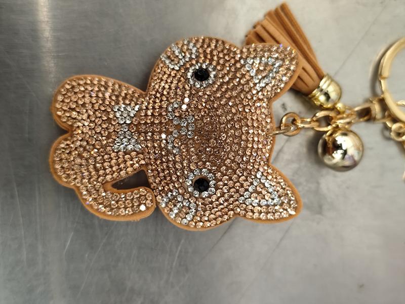 Брелок на ключі кіт кішка об'ємний бежевий у стразах