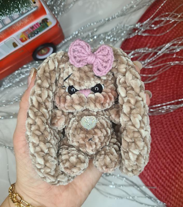 Милий плюшевий брелок у вигляді зайчика, виконаний вручну з м’якої пряжі. Приємний на дотик, компактний та легкий — ідеально підійде як прикраса для сумки, рюкзака або ключів. Чудовий варіант подарунка для дитини чи дорослого, який любить милі аксесуари. Розмір: 11 см. Ручна робота, кожен виріб унікальний. Ключові слова: брелок, брелок зайчик, плюшевий брелок, в’язаний зайчик, іграшка брелок, ручна робота, хендмейд, аксесуар для сумки, брелок на ключі, подарунок, милий подарунок, зайчик 11 см