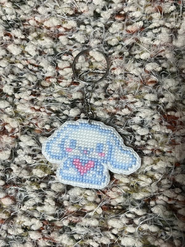 Брелок Синаморол песик з довгими вушками, ручна робота, пластикова канва, двосторонній, розмір 6х4 см.