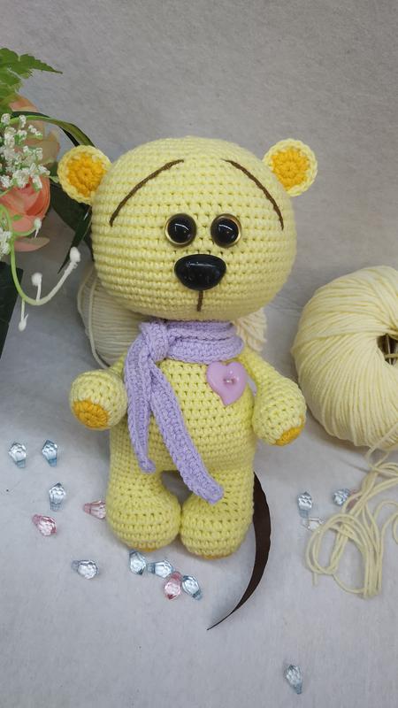 Брелок Мишка ручной работы связан крючком из хлопковой пряжи, глаза и нос на безопасном креплении наполнение холофайбер 🐻