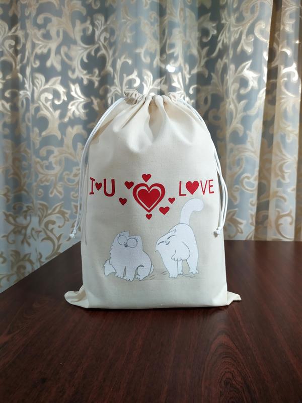 Еко мішечок подарунковий із тканини Бязь сурова, малюнок виконаний вручну, ідеальний варіант для пакування подарунка, підійде також для зберігання сушки круп та інших продуктів, висока якість пошиття і фарби, стягується плетеним шнурком з обох боків, розмір 25×34 см