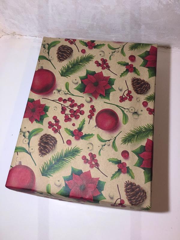 Коробка упаковка подарункова на подарунок для подарунка з новорічним різдвяним принтом мал...