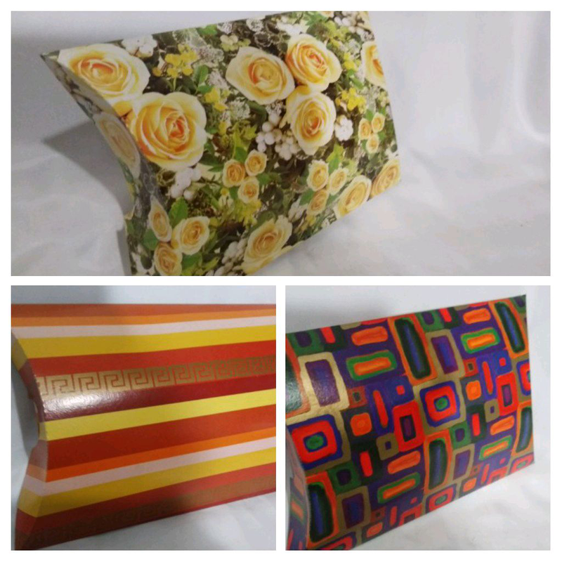 Тип упаковки: Коробки Кілька примірників у наявності Подарункова коробка виконана з кольорового тисненого картону . Збирається коробочка дуже легко, і має вигляд "подушечки" Розміри коробки : Довжина-20,5 див, Ширина-18 див, Висота-5,5 см. Ціна за 1 штуку. Відправляється в розібраному вигляді.