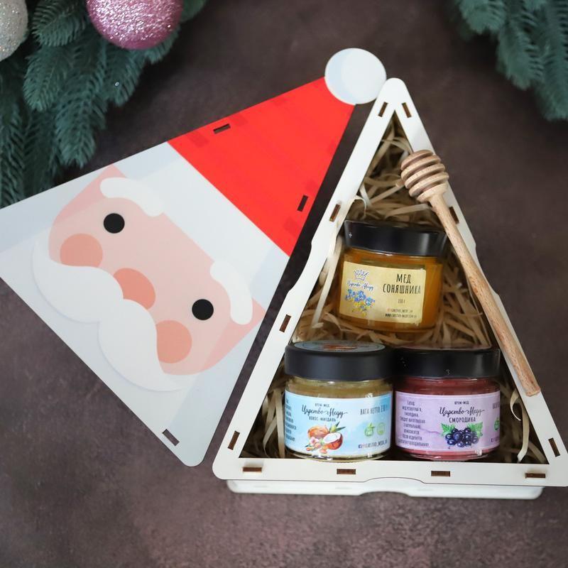 Подарунковий набір №57 Чудовий подарунок до Нового Року у дерев'яній коробочці для Ваших рідних та близьких. У наборі: 130 г соняшникового меду 130 г крем мед кокос-мигдаль 130 г крем мед смородина Наповненням такого подарункового боксу до Нового року є продукція українського бренду сімейної пасіки, та має натуральну складову. Розмір 24*20*10 см Додаткові характеристики: Матеріал: Дерево