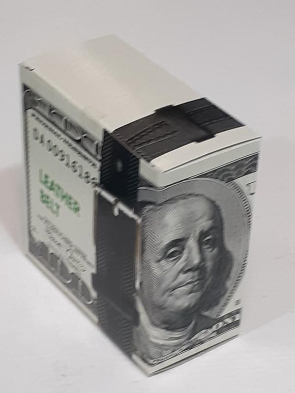 Коробка пакувальна картонна (110 х 110 х 50 мм Franklin $100) із зображенням американського долара. Товщина картону 0,4мм. Постачається виключно як упаковка у комплекті з нашим товаром.