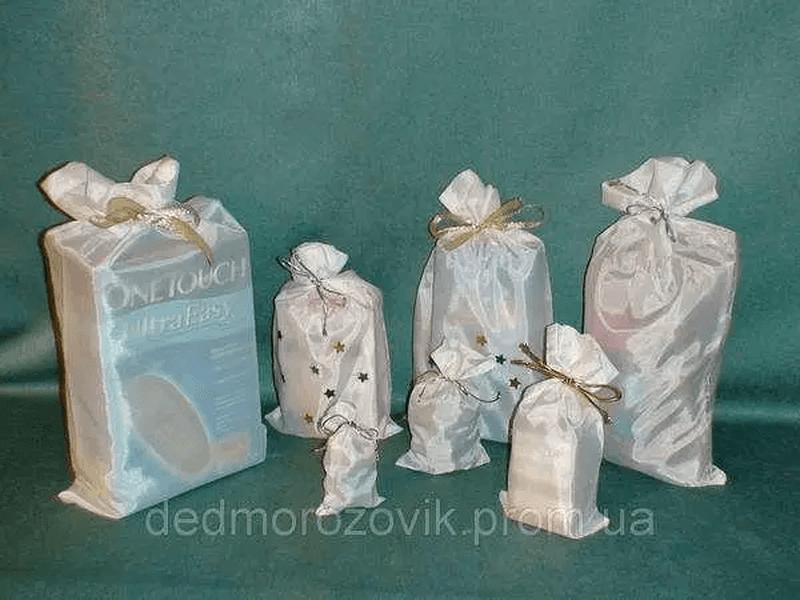 Мішечок подарунковий (35х19 см) Шовк. Білий зі срібним люрекс-шнурочком. Код товара 09006 Подарунковий мішечок зав'язується елегантним срібним люрексовим шнурочком, який входить у комплект товару. ### Призначений для досить великих за розміром і навіть великих подарунків Всі добре вже знають, як приємно отримувати подарунки упакованими, а упакованими красиво, зі смаком та любов'ю – десятиразово приємніше! Мішечки для подарунків – найкласніша упаковка, як нам здається. Судіть самі: паперова упаковка, якою б яскравою вона не була – розривається під час розпакування та викидається, поліетиленові пакети наступного дня пристосовуються для господарських потреб та «зникають» у купі інших пакетів. а тканинні симпатичні мішечки, та ще й із зав'язочками – зберігають як пам'ять і використовують кілька років у будинку, завжди пам'ятаючи про Ваш подарунок і про Вас… Адже такий мішечок на відміну від одноденного разового пакування – вже подарунок сам по собі! Підберіть подарункові мішечки розмірами під можливі подарунки та зробіть ваші подарунки справжнім святом для Ваших близьких. Приємних покупок! Мішечок для новорічного подарунка з шовкової білої тканини з Срібним люрексовим шнурочком (35см х 19см) для досить великих і навіть великих за розміром подарунків... Чи підійде Вам?