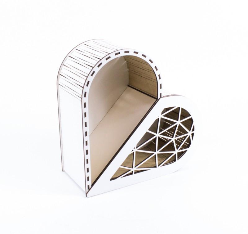 Подарункова коробочка сердечко Павутинка з перегородкою Дерев'яна коробка призначена для оформлення оригінального подарунка, композиції з фруктів, овочів, мила,солодощів. Виготовлено з високоякісного екологічного матеріалу, ДВП товщиною 3 мм,тому довго буде зберігати свій бездоганний вигляд. З її допомогою можна створити неймовірний гарний презент на день Святого Валентина, день народження, 8 березня, день матері, весілля, або інше свято. Ширина - 27 см висота - 25 см глибина - 10 см