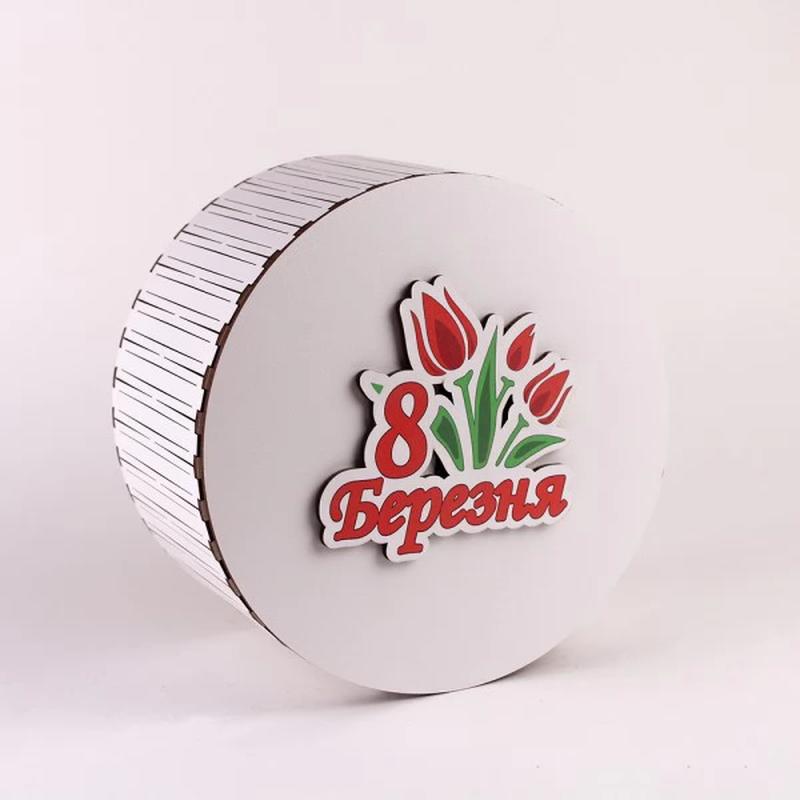 Подарункова коробка кругла "8 березня" тюльпани біла