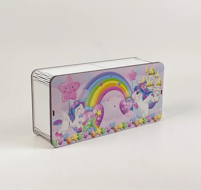 Подарочная коробка прямоугольная белая "Единороги" 4 Деревянная коробка предназначена для оформления оригинального подарка, составления букета или композиции из фруктов, овощей, мыла, сладостей. Изготовлен из высококачественного экологичного материала, ДВП толщиной 3 мм, поэтому долго будет сохранять свой безупречный вид. Композиции в таких коробках, непременно порадуют как взрослых так и детей Размер 4-29Х14 см. глубина 8 см.