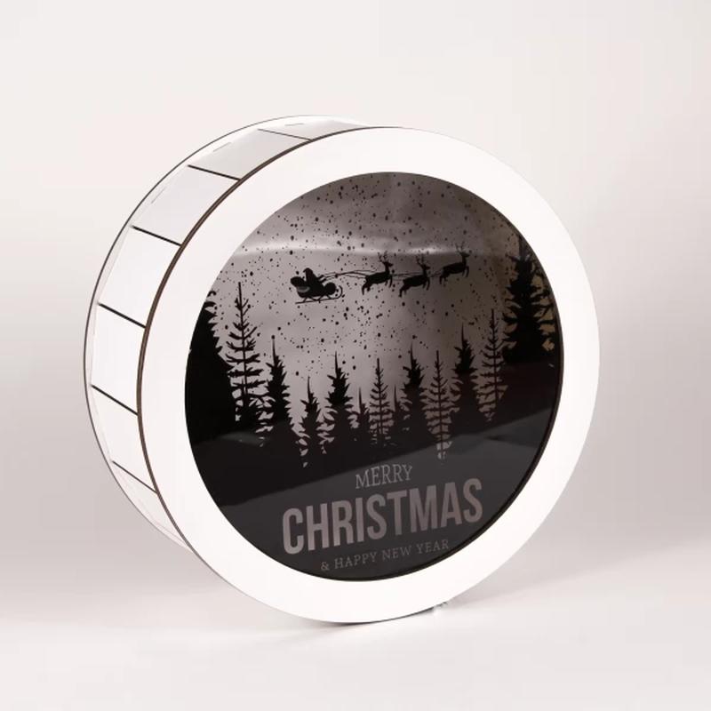 Подарункова коробка кругла біла з прозорою кришкою "merry christmas"