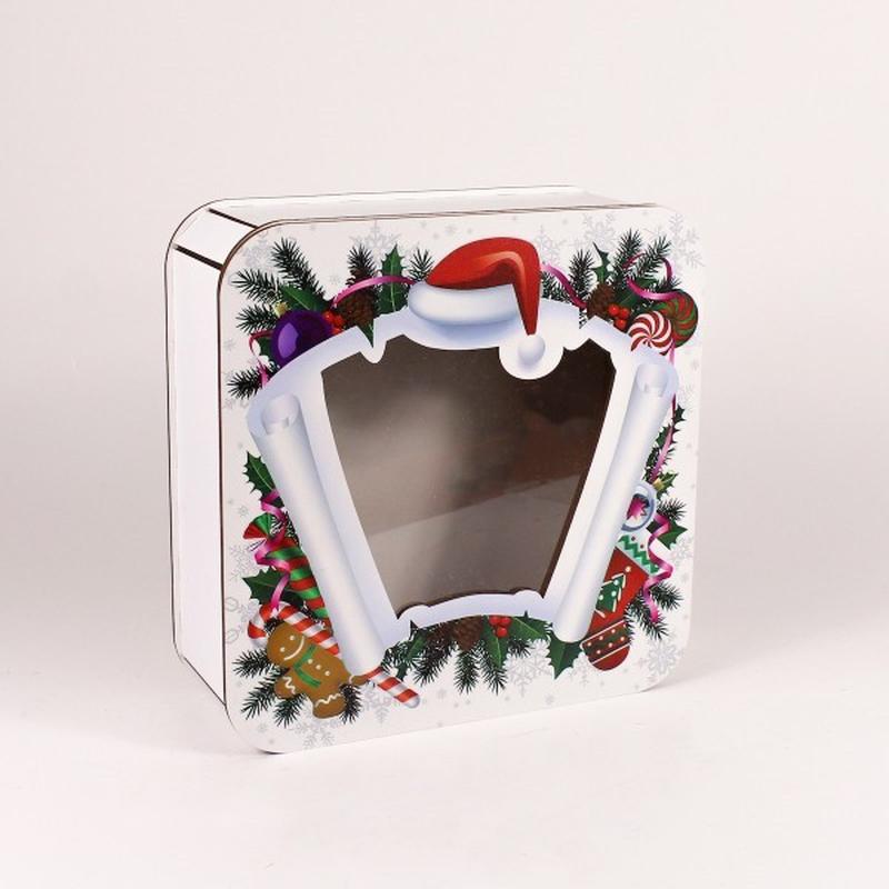 Подарункова коробка "Шапка Діда Мороза" з прозорою кришкою Дерев'яна коробка призначена для оформлення оригінального подарунка, композиції з фруктів, овочів, горішків,солодощів. Виготовлено з високоякісного екологічного матеріалу, ДВП товщиною 3 мм,тому довго буде зберігати свій бездоганний вигляд. З її допомогою можна створити неймовірний гарний презент