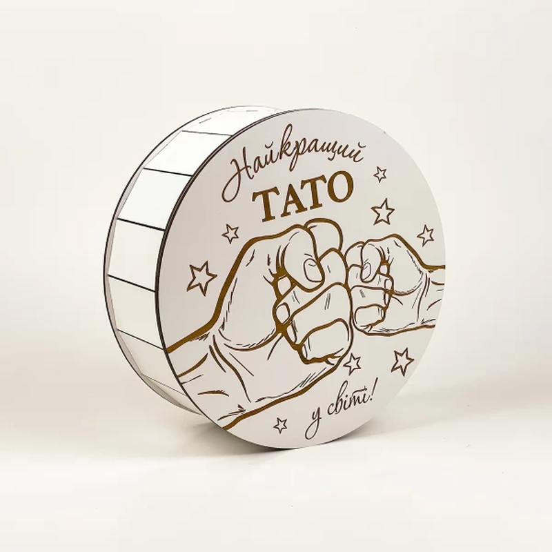 Подарочная коробка "лучший папа в мире!" с гравировкой круглая белая средняя