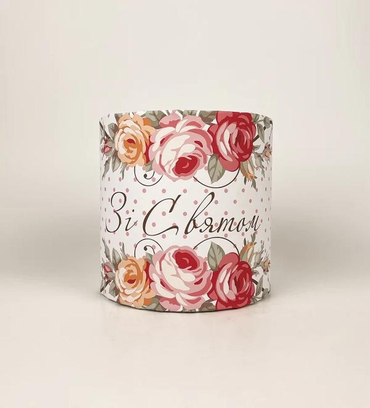 Подарункова коробка кругла 15х15 "зі святом!" троянди