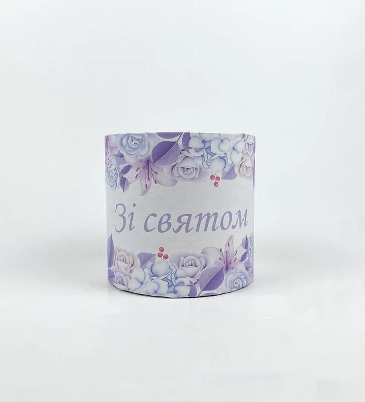 Подарункова коробка кругла 15х15 "зі святом !" фіолетові квіти