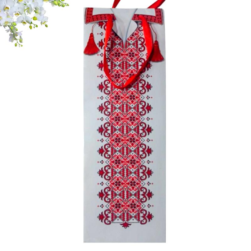 Пакет подарунковий під пляшку вишиванка 36х12х9см