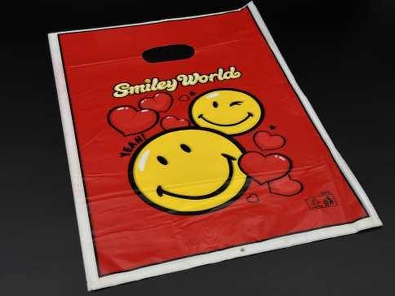 Подарункові поліетиленові пакети 25х35см "smiley world". колір червоний. / подарункові пол...