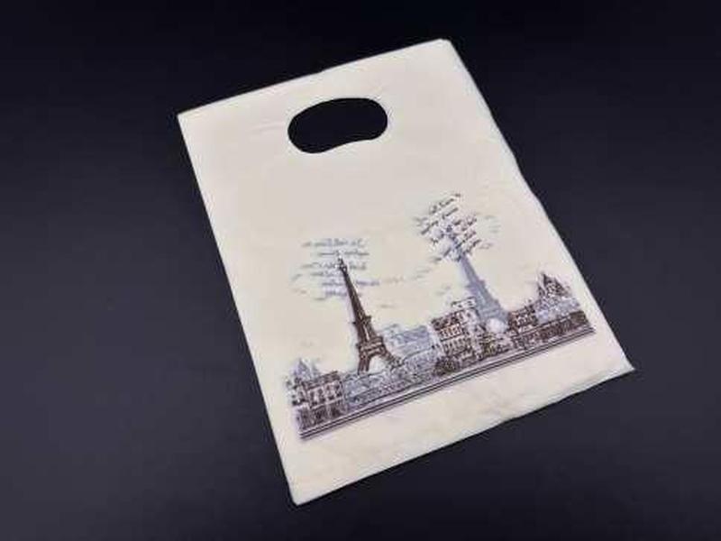 Подарункові поліетиленові пакети 15х20см Париж. Колір слонова кістка.