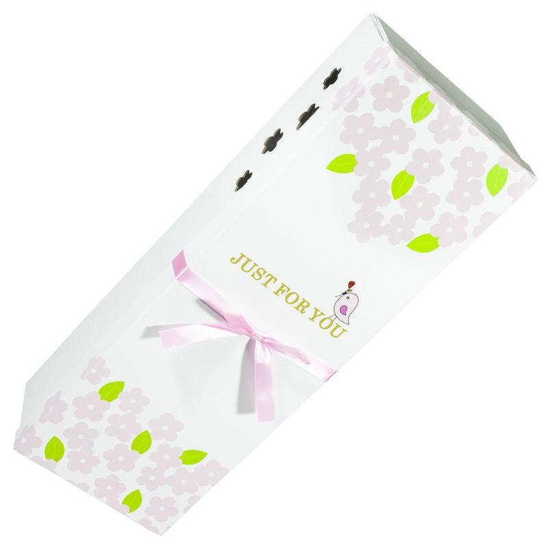 Размеры в наборе: 58,5x20x12,5см. Большая сборная прямоугольная коробка для цветов. Выполнена преимущественно в белом цвете. Иллюстрирована веселым цветочным принтом с надписью "Just For You" и украшена розовым атласным бантом. Плотный картон. Предназначена для объемных цветочных композиций или крупных букетов (длинных роз, лилий, орхидей и др.). Чтобы цветы долгое время могли оставаться свежими, дополнена сквозными отверстиями по бокам.