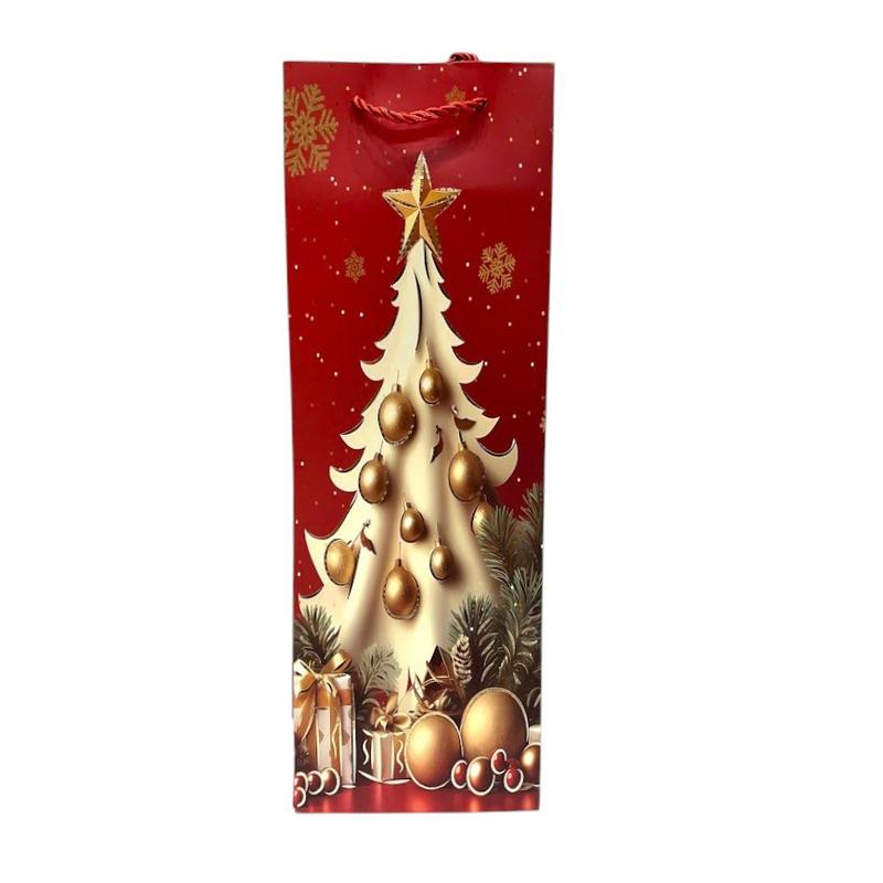 Подарунковий новорічний пакет- під пляшку, розмір 12х35х9 см , 1 шт , арт 019790, різнокол...