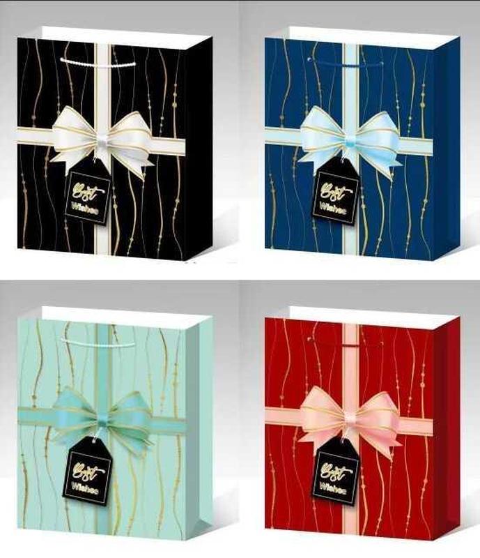 Стильний подарунковий пакет середнього розміру Пакет ідеально підходить для презентації подарунків різного типу. Має розміри 26х10х32 см, що дозволяє зручно помістити всередину різні предмети. - Тип ручки: міцний шнурок для зручного перенесення - Прикрашений декоративною фольгою, що надає святкового блиску - Різноманіття кольорів і дизайнів у міксі для вибору під будь-який стиль