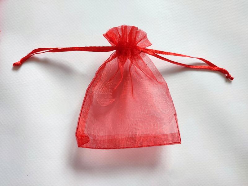 Красный мешочек мешок с завязками упаковка прозрачная сеточка органзы