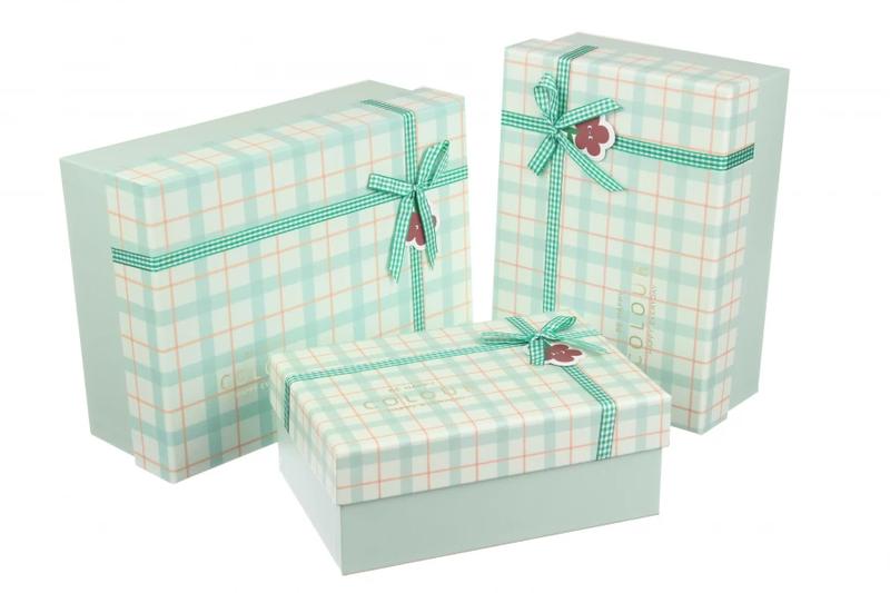 Подарункові коробки салатові в клітинку, розм.l: 28,5*21,5*11 см (комплект 3 шт)