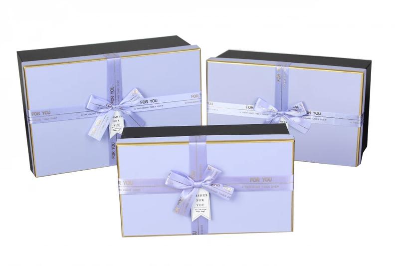 Подарункові коробки блакитні з бантом, розм.l:33.5*25*11.5 см (комплект 3 шт)