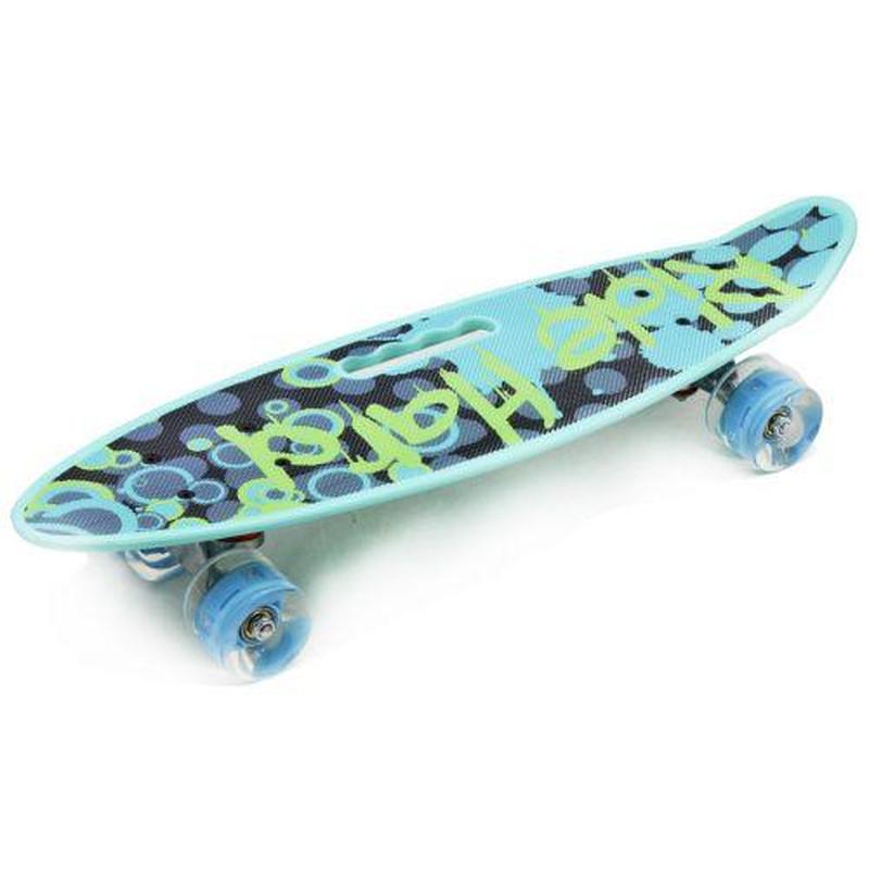 Пеніборд. Легка дека зроблена з міцного формованого пластику. Дека з ручкою. Довжина деки — 59 см, ширина — 16 см. Колеса PU зі світлом, d = 6 см. Максимальне навантаження 70-80 кг. Колір коліс може відрізнятися від зазначеного на фото. Паковання: Пакет Колір: М'ятний Вага в упаковці: 1400 г Габарити в упаковці: 17 x 60 x 11 см Страна виробник: Китай Матеріал: Комбінований Комплектація: Пені борд