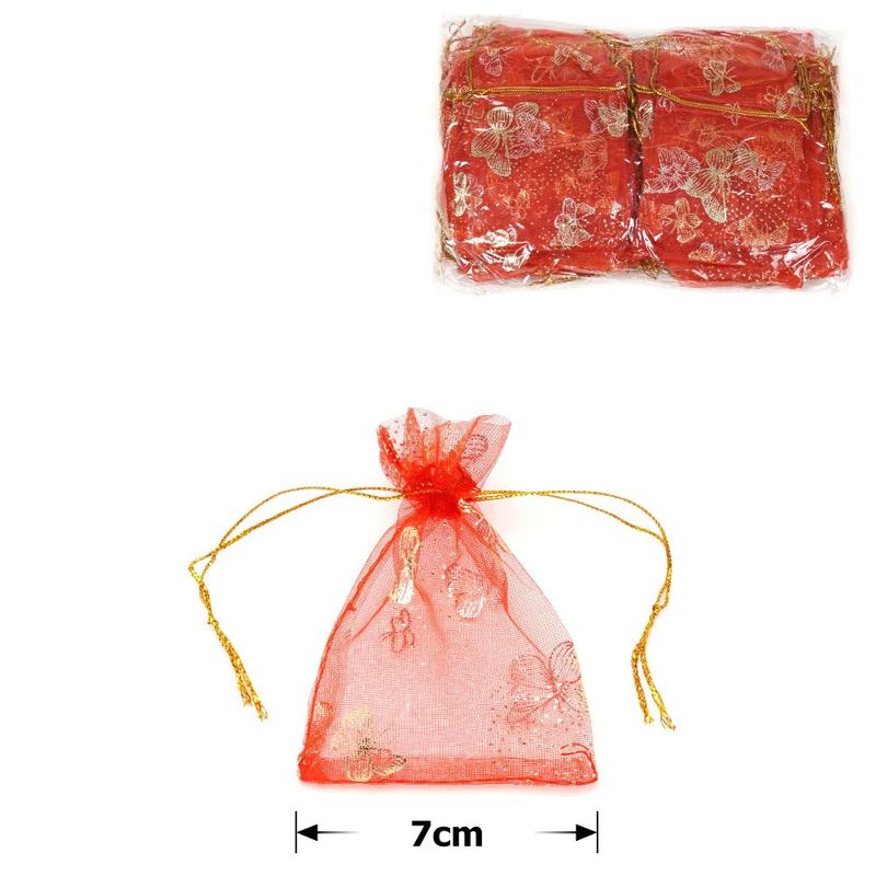 Подарункові мішечки 7x9см із органзи на зав'язках червоні (упаковка 50 шт)